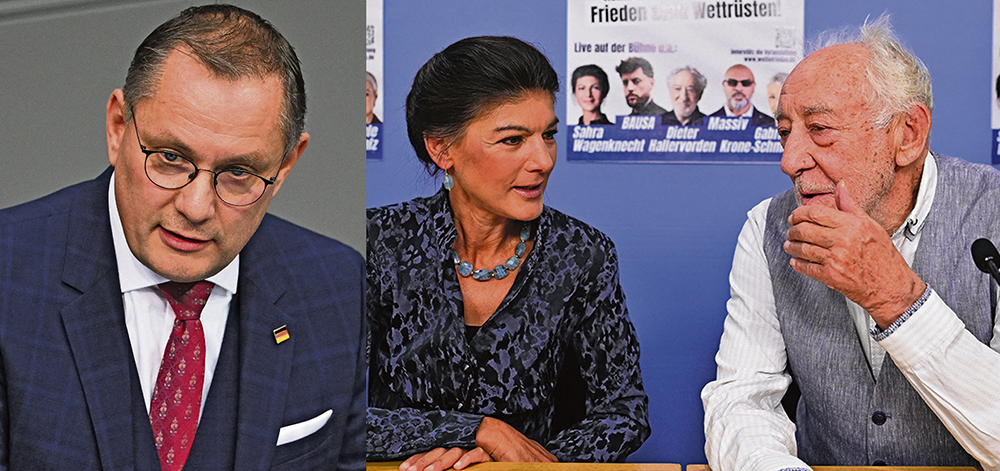 Tino Chrupalla, Sahra Wagenknecht und Didi Hallervorden stellen sich gegen den Überlebenskampf der jüdischen Nation. © RALF HIRSCHBERGER / AFP; JOHN MACDOUGALL / AFP