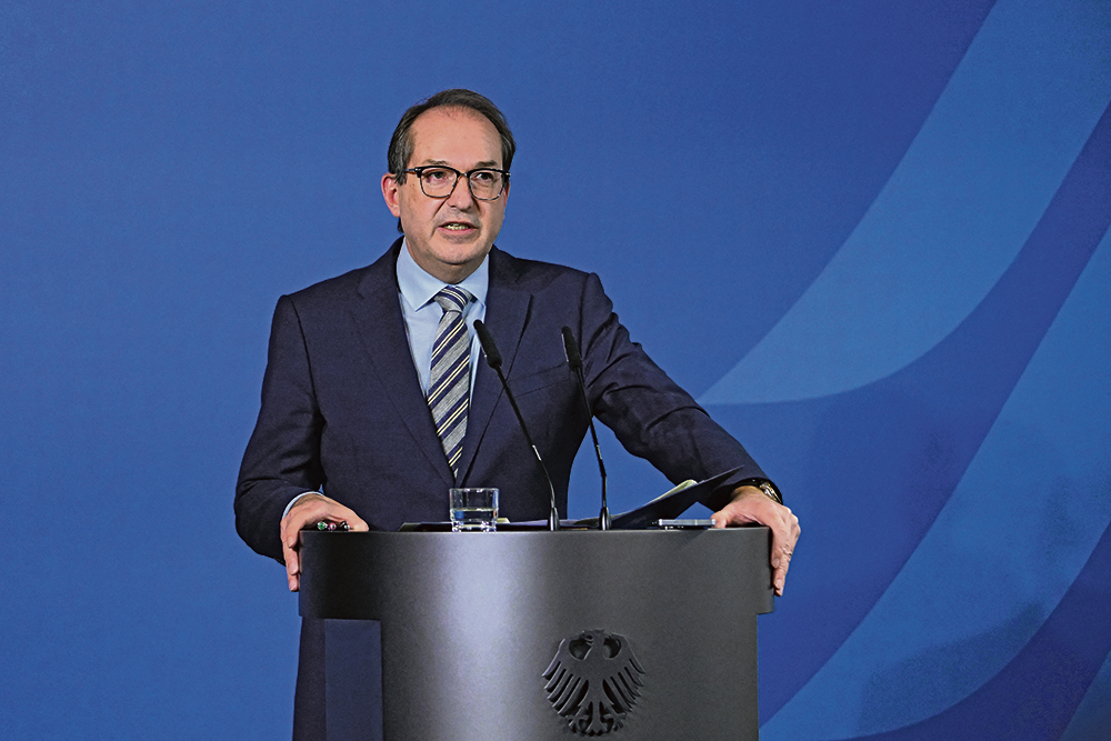 Bundesinnenminister Alexander Dobrindt gibt eine Erklärung zum Verbot von „Muslim Interaktiv“ in Berlin ab.© TOBIAS SCHWARZ_AFP